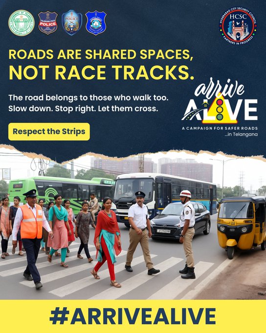 Pedestrian crossings exist to protect those on foot. Giving way at the zebra line is not only courteous - it’s the law. Let’s ensure every person can cross safely by slowing down and stopping at the right place. @HYDTP @hydcitypolice @TelanganaPolice #ArriveAlive