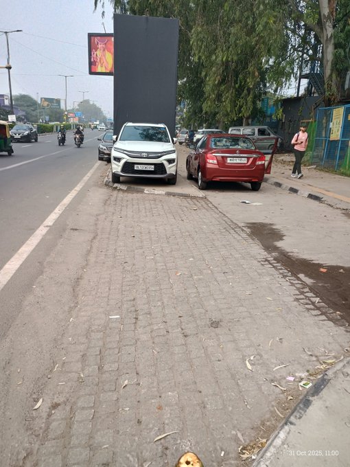 Even when there is plenty of space on the road with marked parking, these motorists will park on the footpath because they can't walk 200 meters. Police do remove illegally parked vehicles, but even they are overworked due to the sheer number of violators. 📍 Besant Nagar